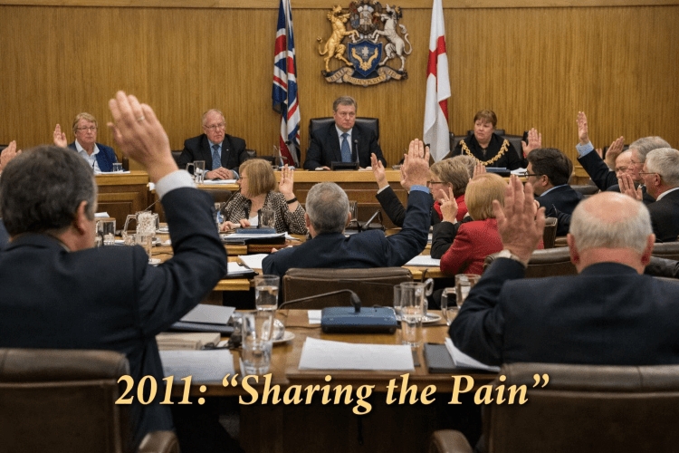 In 2011, councillors responded to crisis by taking less. In 2025, councillors respond by rearranging how they take it.