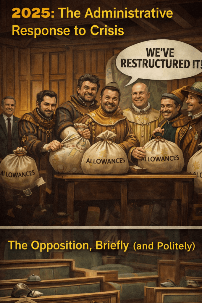 And yet, at a full Council meeting on 17 July 2025, councillors also approved changes to the Members’ Allowances Scheme, permitting payment for up to ten Deputy Portfolio Holders. This was presented not as an increase, but as a restructuring — a phrase carefully chosen to reassure that there was “no net increase to the budget”.