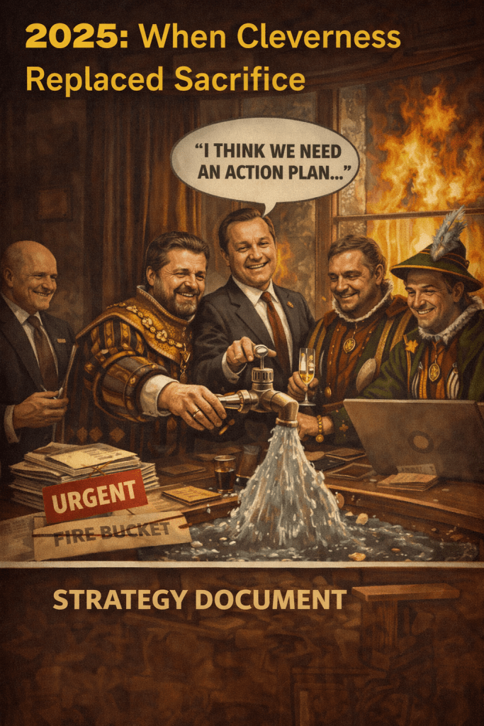 When the house was on fire, yesterday’s councillors fetched water. Today’s councillors convene a meeting to discuss the hydrant — and reassure us, earnestly, that no additional water has been budgeted.