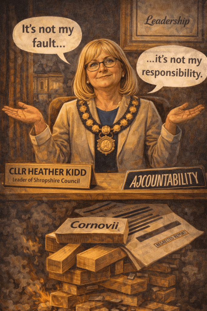 Cllr Heather Kidd, as Leader of Shropshire Council, presides over an administration that now describes collapse without authors.