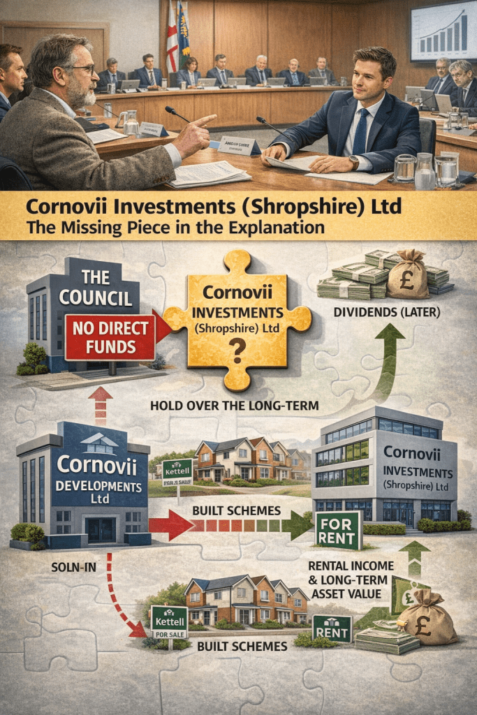 What was not fully visible within that exchange is the role played by a second company within the structure: Cornovii Investments (Shropshire) Ltd.