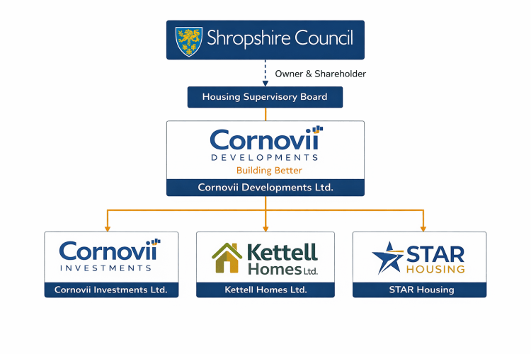 The Housing Supervisory Board was established by Shropshire Council to exercise shareholder oversight of Cornovii Developments Ltd on behalf of the authority. Its stated function included monitoring performance, reviewing business plans, and ensuring delivery aligned with Council objectives.