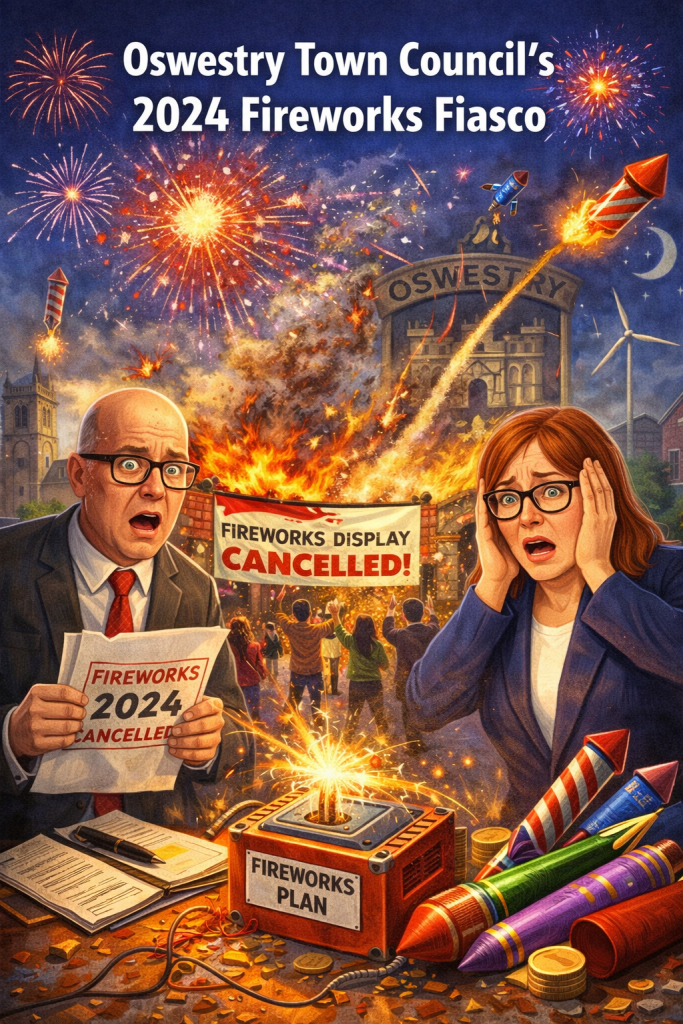Then came Oswestry Town Council’s 2024 fireworks fiasco, the sort of civic spectacle that manages to combine public entertainment with a post-event governance headache. The Cae Glas Park display on 2 November 2024 was meant to be a cheerful family occasion. Instead it generated complaints, questions over crowd management and exits, and the now familiar refrain that lessons would be learned once the smoke had cleared.