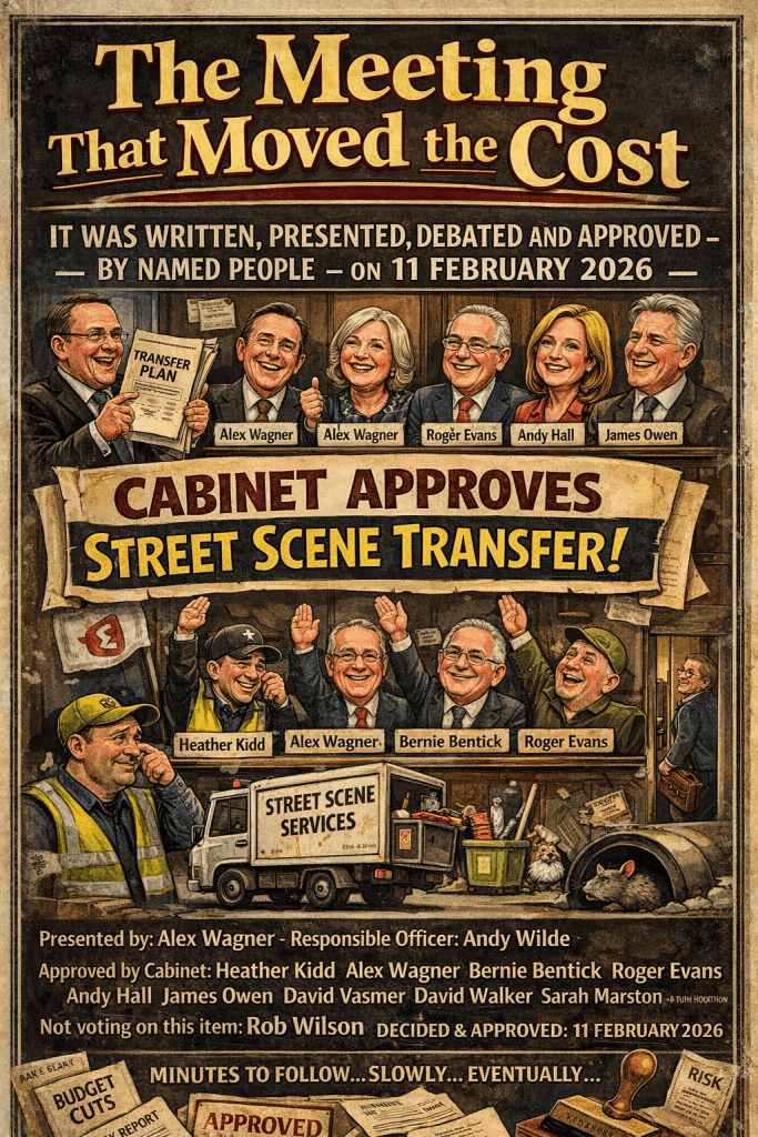 On that date, Cabinet approved the transfer of what it politely calls Street Scene services: